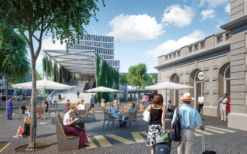 Quai Ouest, ce sont deux nouveaux bâtiments implantés de part et d’autre bâtiment de la gare existant, qui sera conservé. Les constructions abritent des commerces, des bureaux, des activités de services, des logements, une vélostation de 300 places, un parking dont un P+Rail ainsi que, bientôt, le nouveau tram lausannois.
